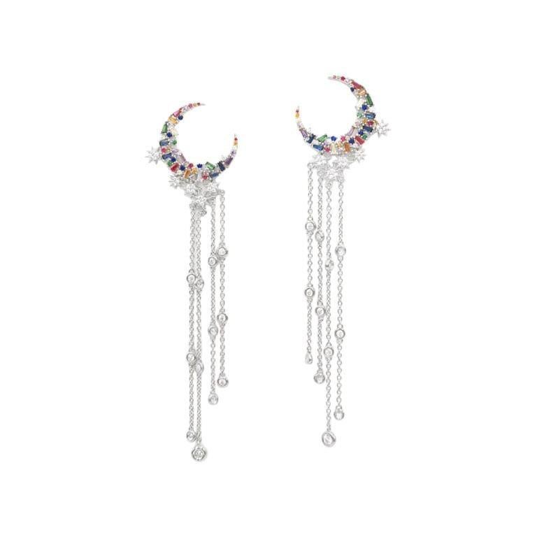 Rainbow Moon And Starburst Dangle Earrings White For Sale At 1stdibs