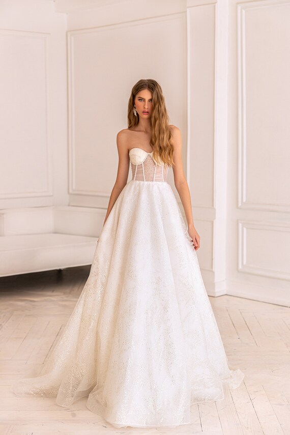 Basque Waist Long Sleeves Sweetheart Neck White Ball Gown Wedding Dress With Glitter Tulle Various Styles Etsy Uk